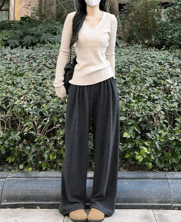 裤子则是很经典、不挑腿型的裤王“阔腿版型”。