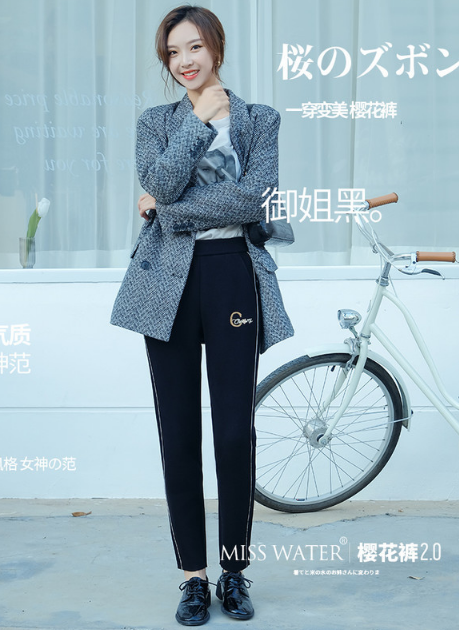 这款樱花裤是宽松的哈伦裤版型,不会像紧身裤一样紧绷挑身材,也不会像阔腿裤那样太随意。