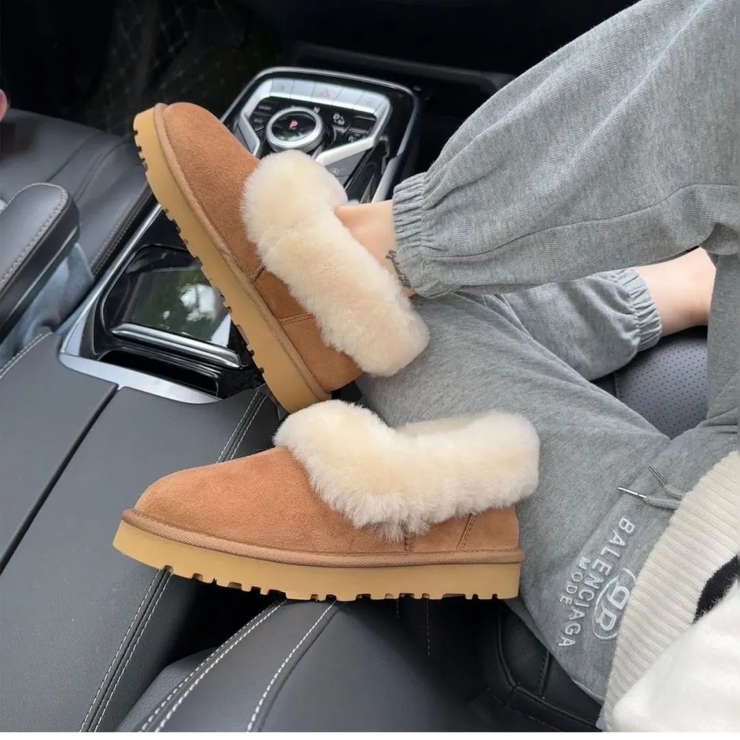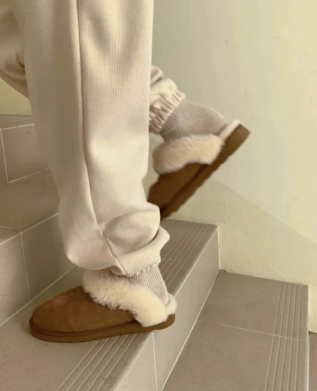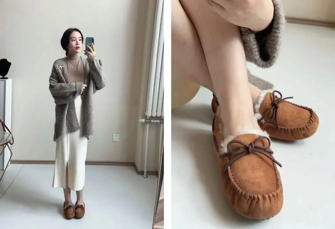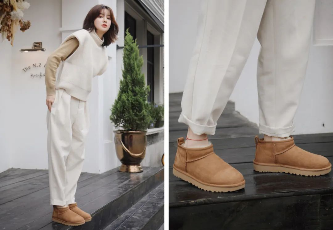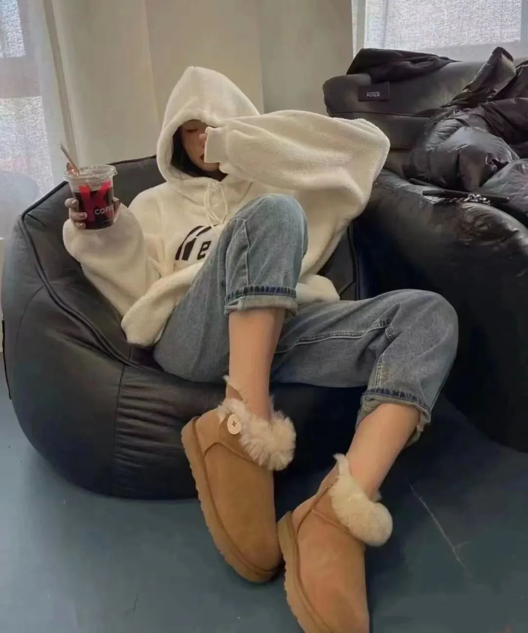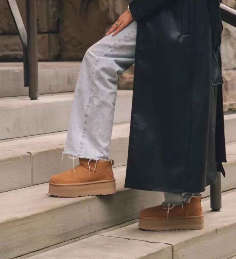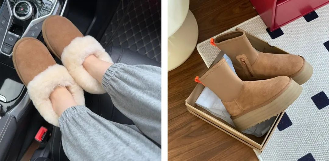 想要在简约款式里增加一点点小心机,那这款一粒扣就是不二之选啦:)经典短筒雪地靴的版型,加上一粒扣和顶端开口的点缀,简单又不失重点。腿形没有那么完美的姐妹,这双鞋可能成为你的冬日最爱~有灰色、黑色、巧色、栗色 4 种经典配色,随便买一双就能穿一冬天。冷知识:《来自星星的你》已经是十年前的电视剧了!!十年了,当初火过的什么口红、外套、发型全都已经不再时髦,但独独留下了一双羊毛拖鞋,现在看还是那么令人心动—— 也是自那时以后,这双鞋拥有了独一无二的姓名:【星拖】鞋面上的中缝设计➕一大圈厚毛,整双鞋都散发着一种惬意态度,舒适不紧绷的自由呼吸感。虽然这款是拖鞋,但是穿起来还满跟脚的,走路不会掉。搭配上,随便配裤子、裙子还是大衣,都能轻松get慵懒感~奈斯~ 讲真,一开始看产品图,我是不太欣赏得来这双“丑靴”的。但是逛小红书的时候,看到了一个博主的上脚图,竟然被种草了,真是越看越香!!!而且它不光显高显瘦,还能修饰腿型,让你的腿变得笔直,“铅笔靴”因此得名。你不用担心这个靴子会难穿,我帮大家测评过了,靴子的内侧有拉链设计,方便穿脱~在搭配方面,这双厚底铅笔靴比去年超流行的低帮厚底靴还要美式复古。