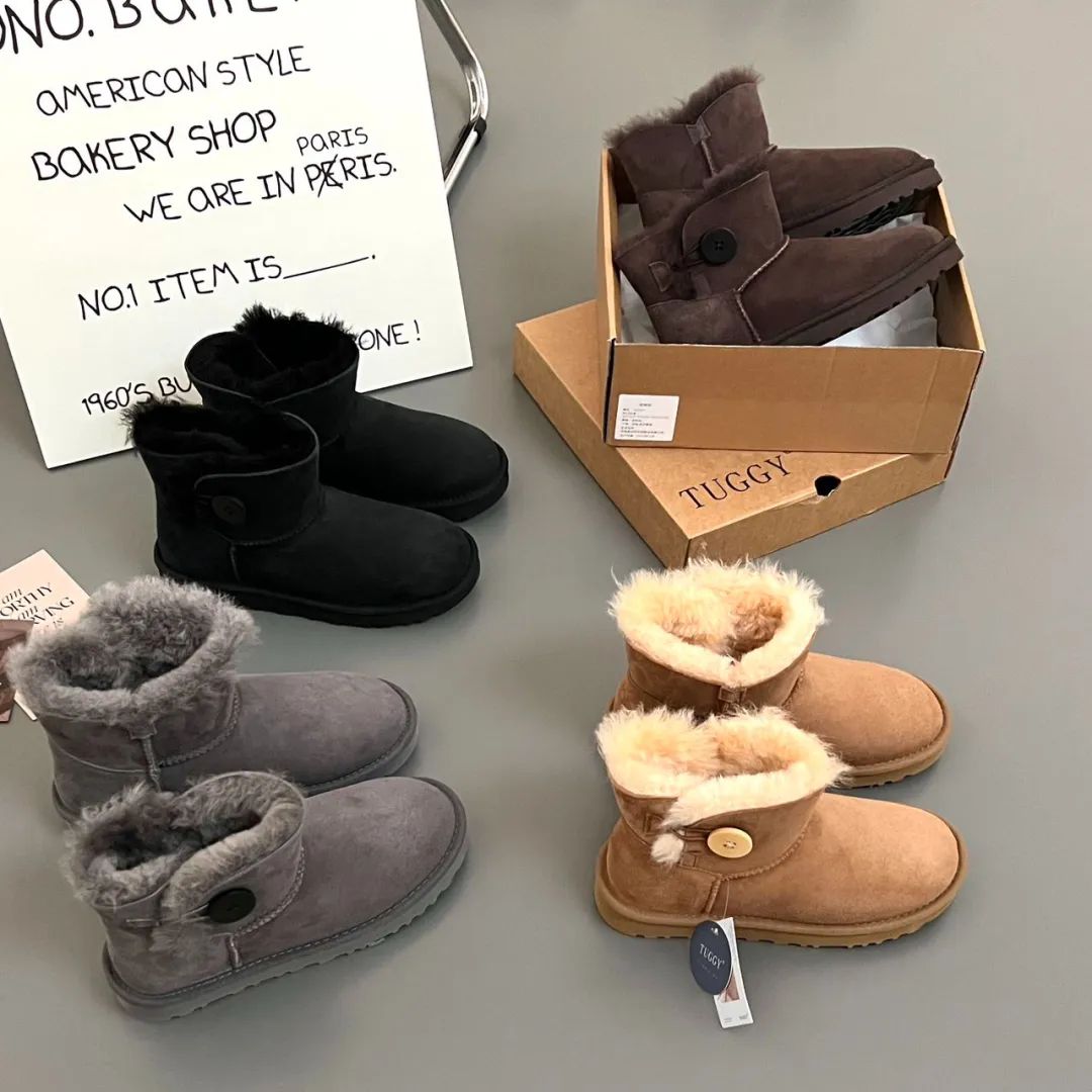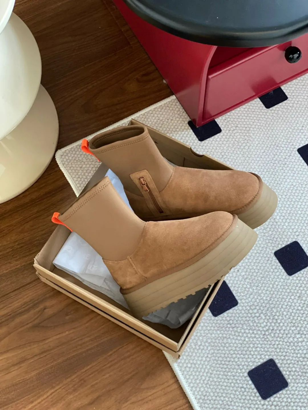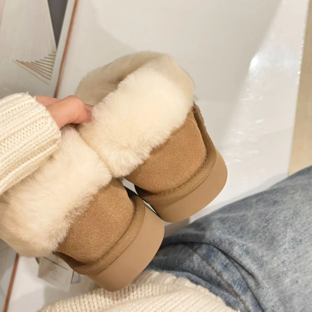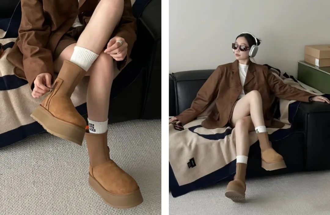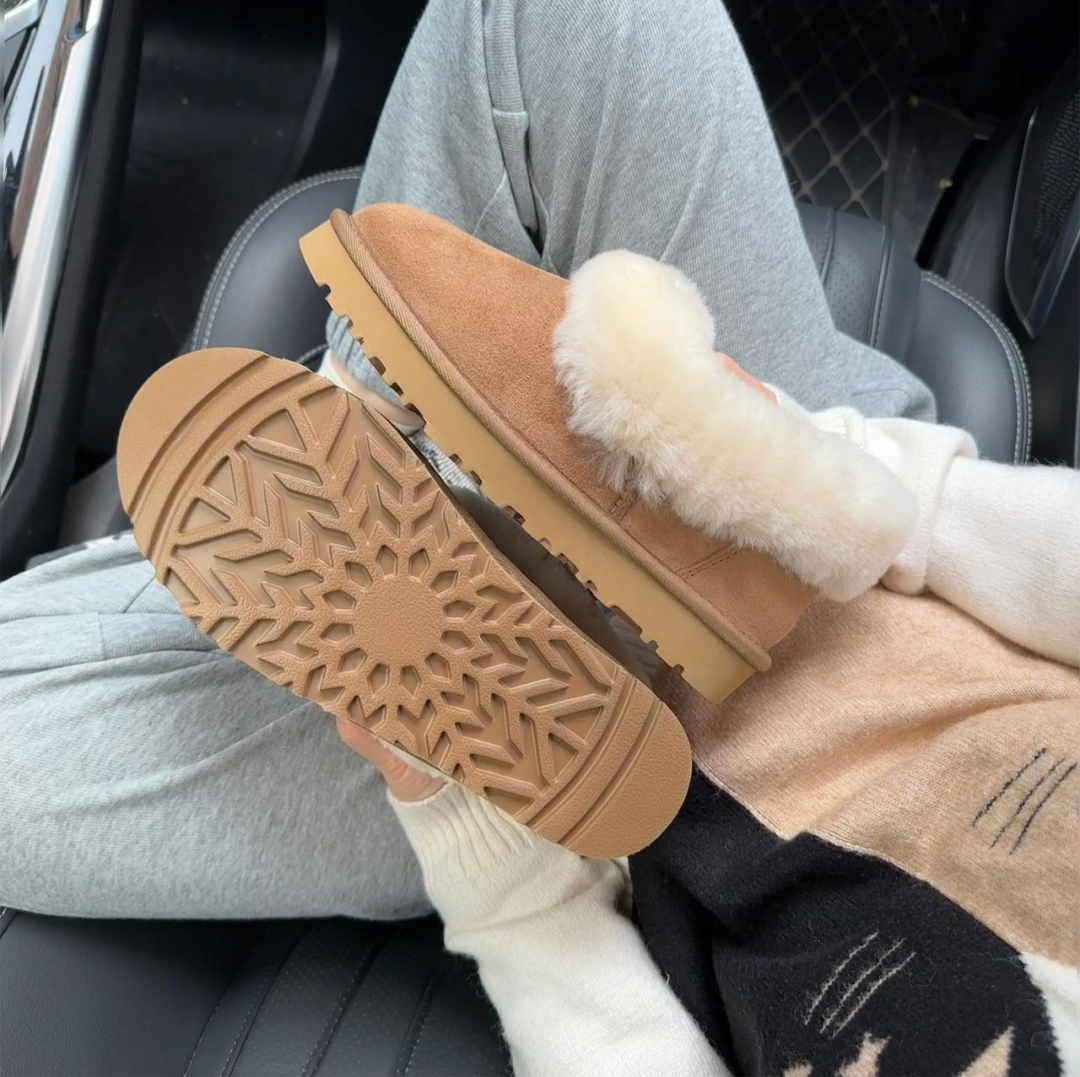想要在简约款式里增加一点点小心机,那这款一粒扣就是不二之选啦:)经典短筒雪地靴的版型,加上一粒扣和顶端开口的点缀,简单又不失重点。腿形没有那么完美的姐妹,这双鞋可能成为你的冬日最爱~有灰色、黑色、巧色、栗色 4 种经典配色,随便买一双就能穿一冬天。冷知识:《来自星星的你》已经是十年前的电视剧了!!十年了,当初火过的什么口红、外套、发型全都已经不再时髦,但独独留下了一双羊毛拖鞋,现在看还是那么令人心动—— 也是自那时以后,这双鞋拥有了独一无二的姓名:【星拖】鞋面上的中缝设计➕一大圈厚毛,整双鞋都散发着一种惬意态度,舒适不紧绷的自由呼吸感。虽然这款是拖鞋,但是穿起来还满跟脚的,走路不会掉。搭配上,随便配裤子、裙子还是大衣,都能轻松get慵懒感~奈斯~ 讲真,一开始看产品图,我是不太欣赏得来这双“丑靴”的。但是逛小红书的时候,看到了一个博主的上脚图,竟然被种草了,真是越看越香!!!而且它不光显高显瘦,还能修饰腿型,让你的腿变得笔直,“铅笔靴”因此得名。你不用担心这个靴子会难穿,我帮大家测评过了,靴子的内侧有拉链设计,方便穿脱~在搭配方面,这双厚底铅笔靴比去年超流行的低帮厚底靴还要美式复古。