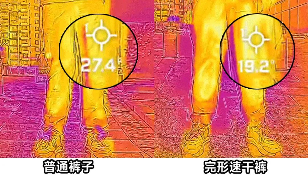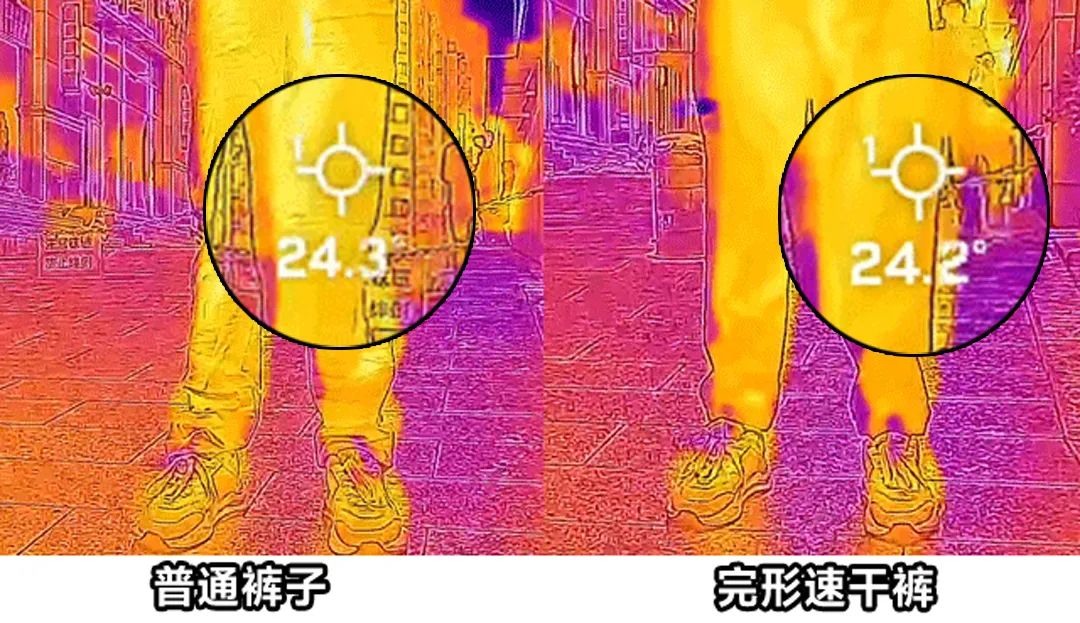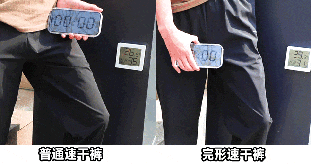 分别穿着完型速干裤和普通夏裤在室外呆5分钟...