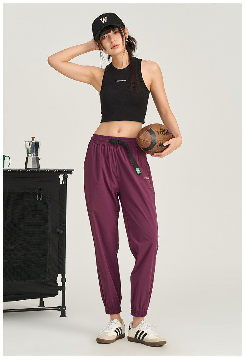 而且完型速干裤不仅功能强大,版型也好。裤型微宽松,加上斜切腿部剪裁和松紧脚口,修饰腿型,男生女生穿都好看显瘦。