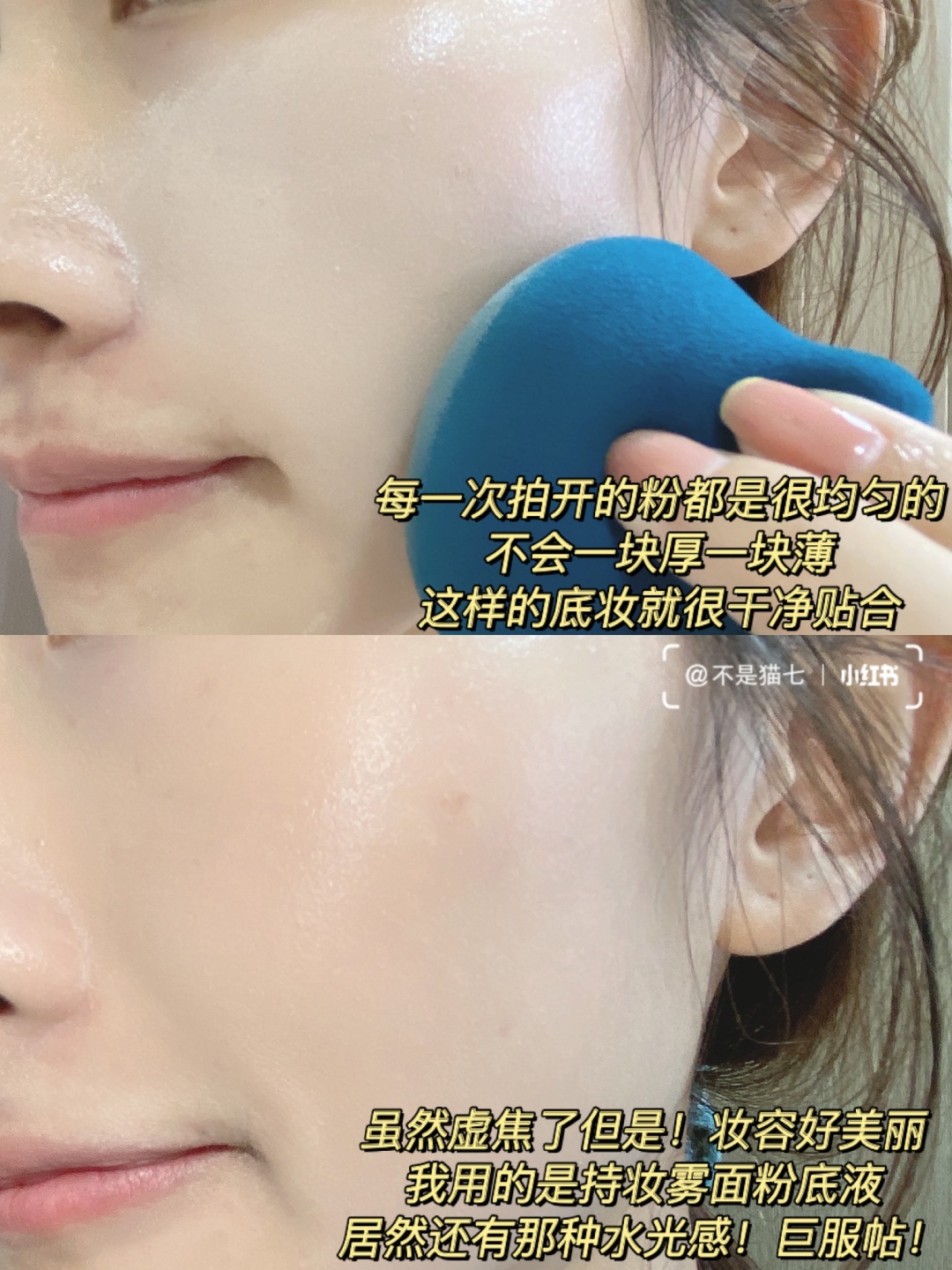 底妆就像第二张皮肤一样焊脸上~还泛着微微光泽感,直男凑近看都以往我没化妆你呢!