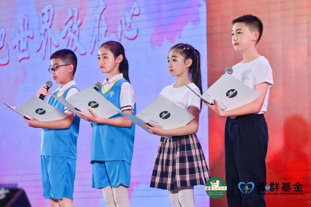 慈善晚宴现场,孙楠、沈晓海、岳红、吉娅与受益于豪群基金会“造新计划”、“重塑未来”公益项目的四位小朋友一同献上原创诗朗诵《把世界放在心上》,掀起晚宴的第一波小高潮。