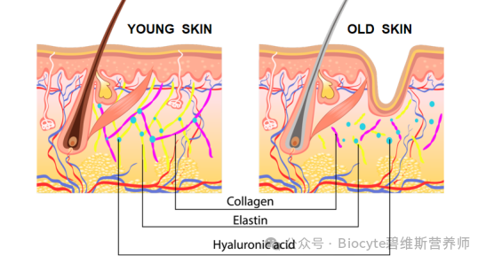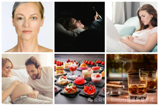 高糖高盐高油饮食、吸烟饮酒等不健康饮食生活方式,也会给身体带来糖化反应,糖化终产物(AGEs)会损害胶原蛋白和弹性蛋白的功能,导致皮肤弹性减少和僵硬度增加、皱纹、肤色暗沉、色素沉着等。所以其实90%以上的肌肤问题都与胶原流失有关!