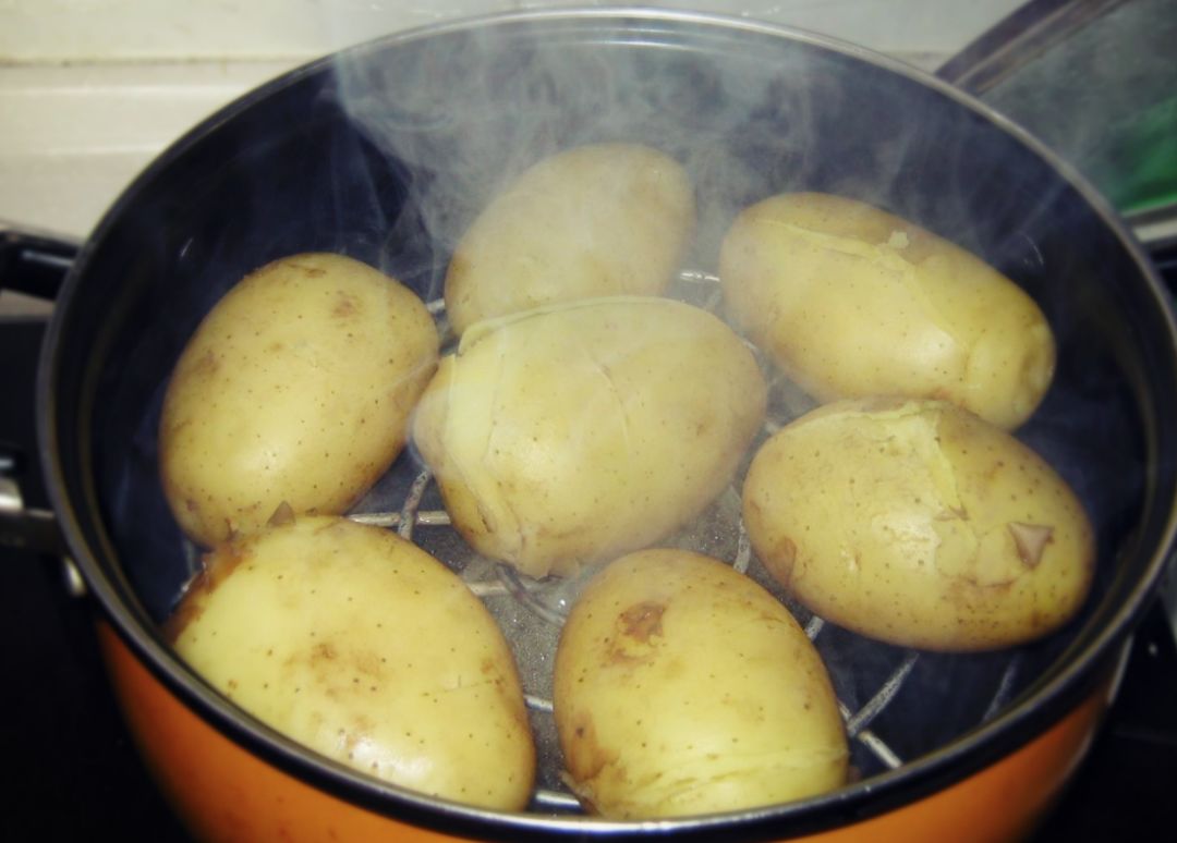 1、用清水把土豆表面清洗干净,放入蒸锅中,蒸制半个小时;
