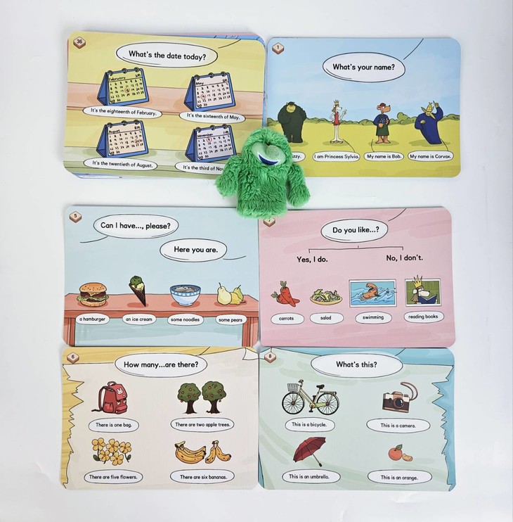如果有担心不会引导孩子互动、应用的,我们只需要拿出对应课时的口语卡,就能轻松进行口语输出互动~
