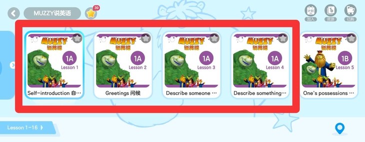 比如对于第一集的动画,按照语言点划分成了自我介绍Self-introduction,问候Greetings,描述某人Describe someone,描述某事Describe something四个课时