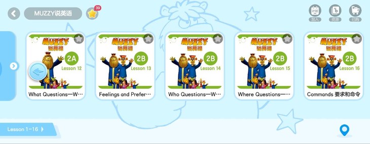 单集课程点进去之后,会分为:①Words 学单词 ②Watch看动画 ③Show Time趣配音 ④Exercise互动练习 和 ⑤Speak开口说 五个环节,每个环节设置控制在2分钟以内,单节知识点的学、看、说、互动练习可以在10分钟左右完成。