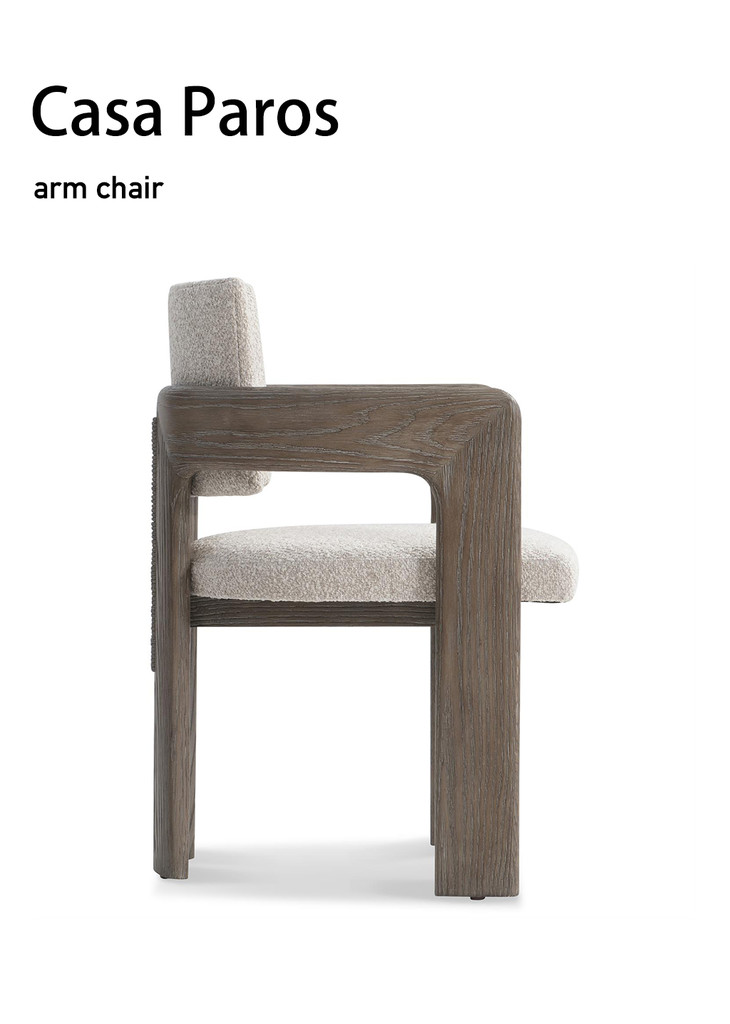 Casa Paros 扶手椅是一把带着手工温度的椅子,手工打磨拼接框架搭配背部的系带编织纹理,体现新鲜的原创性。两侧是弯曲圆润的的简约扶手设计,加上厚重质朴的Playa 饰面木质纹理,显得椅子刚柔并济。亲肤柔软的羊羔绒软垫提供舒适支撑与坐感 ,半包围的靠背设计,带来满满安全感。