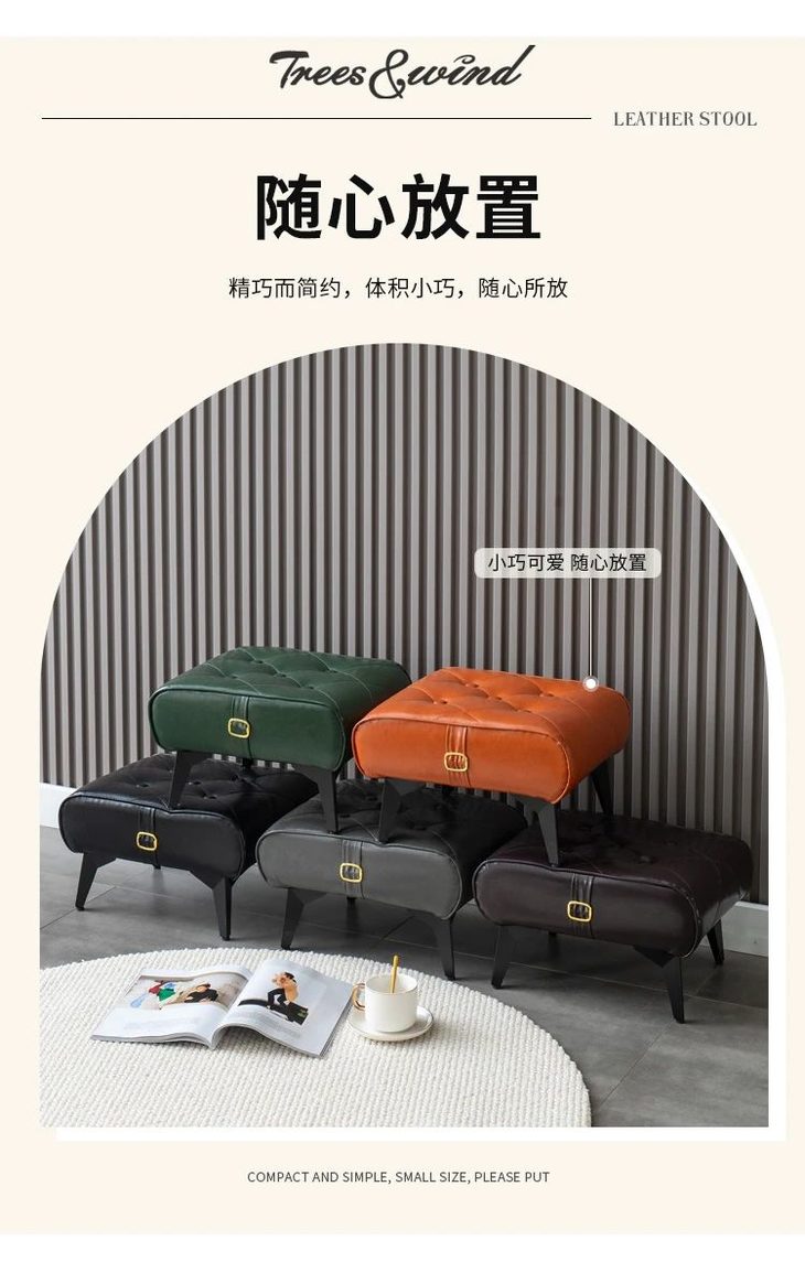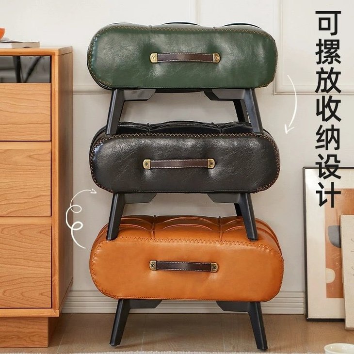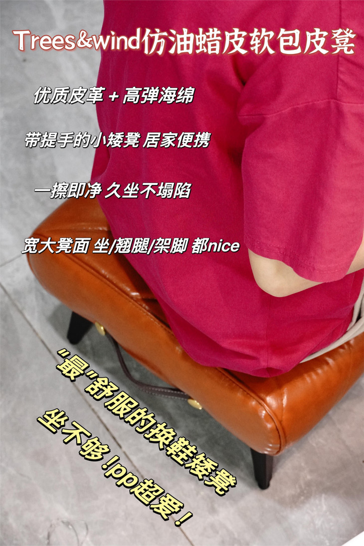 选「Trees&wind复古仿油蜡皮软包小凳」