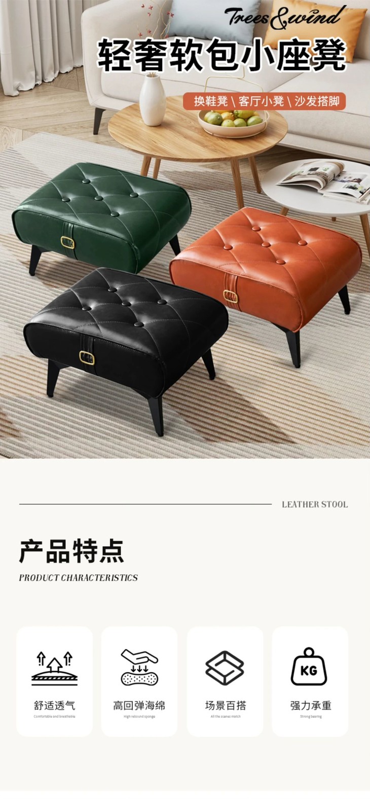 🛋意式轻奢复古仿油蜡皮凳【Trees&wind软包坐凳】妥妥的老钱风单品💰 ✅皮革质感绝美油亮,三款复古色可选 ✅换鞋、搭脚,一张随心所欲的气质小矮凳 ✅宽大凳面,高回弹海绵,坐感舒适超一级 可以手提的矮凳换鞋凳,满满的高级艺术感~