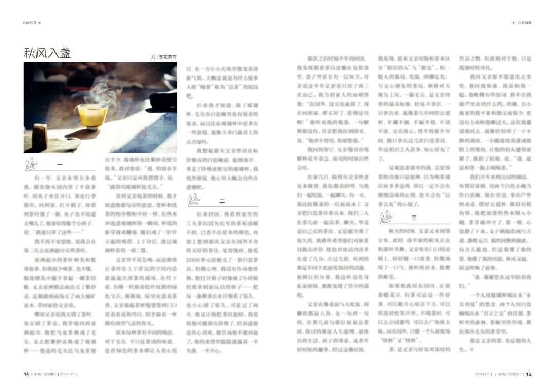 一个人用玻璃杯喝出来“乡关何处”的愁念,两个人用白瓷碗喝出来“君子之交”的甘甜,茶杯里的森林,茶碗里的草地,都在那丛毛尖的茶芽里。