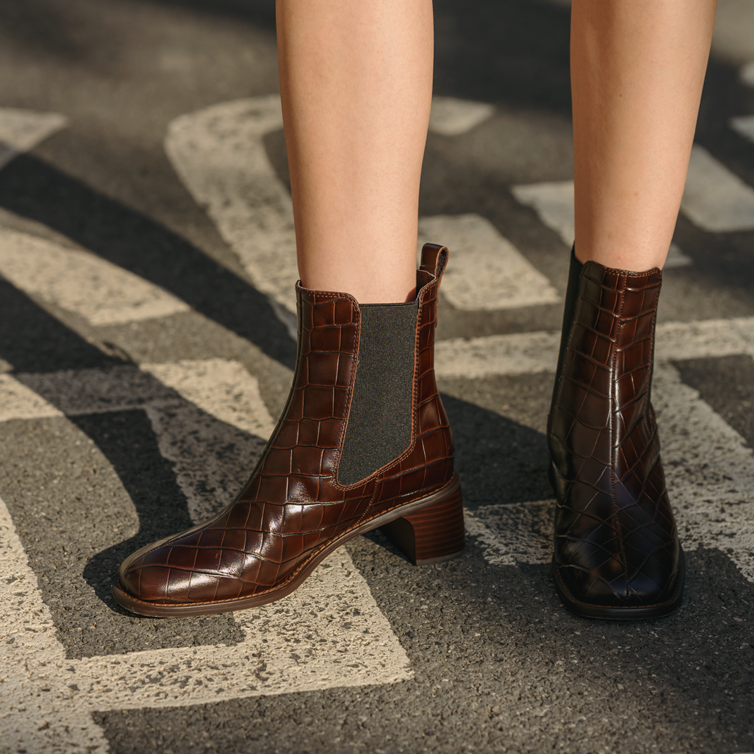 最近工作室收到了好几箱靴子,Marie Claire这双格外显眼,红棕色的鳄鱼压纹,特别复古。穿上显高又显瘦,对我这样的小个子很友好。这个牌子在我们工作室很受欢迎,经常看到几个小伙伴穿他家同一双鞋~▼
