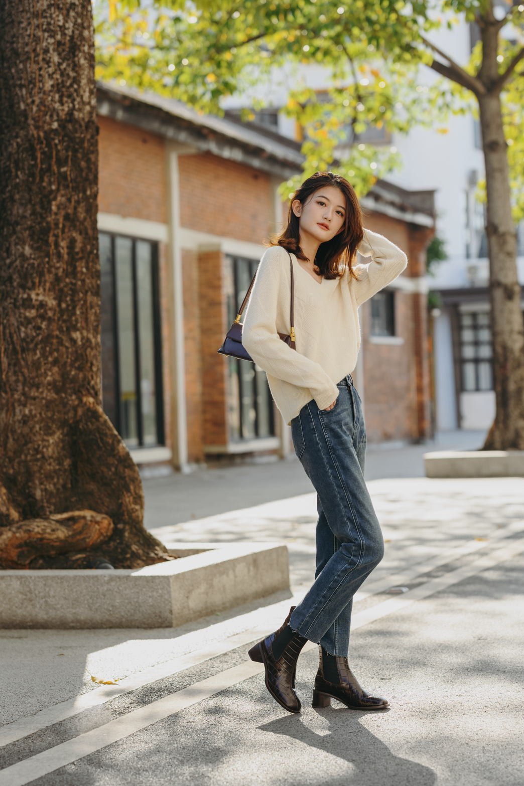 哪怕是一些简单的基本款毛衣、牛仔裤,加上这双法式短靴,立马就有了法式风里那种不经意的时髦感~▼