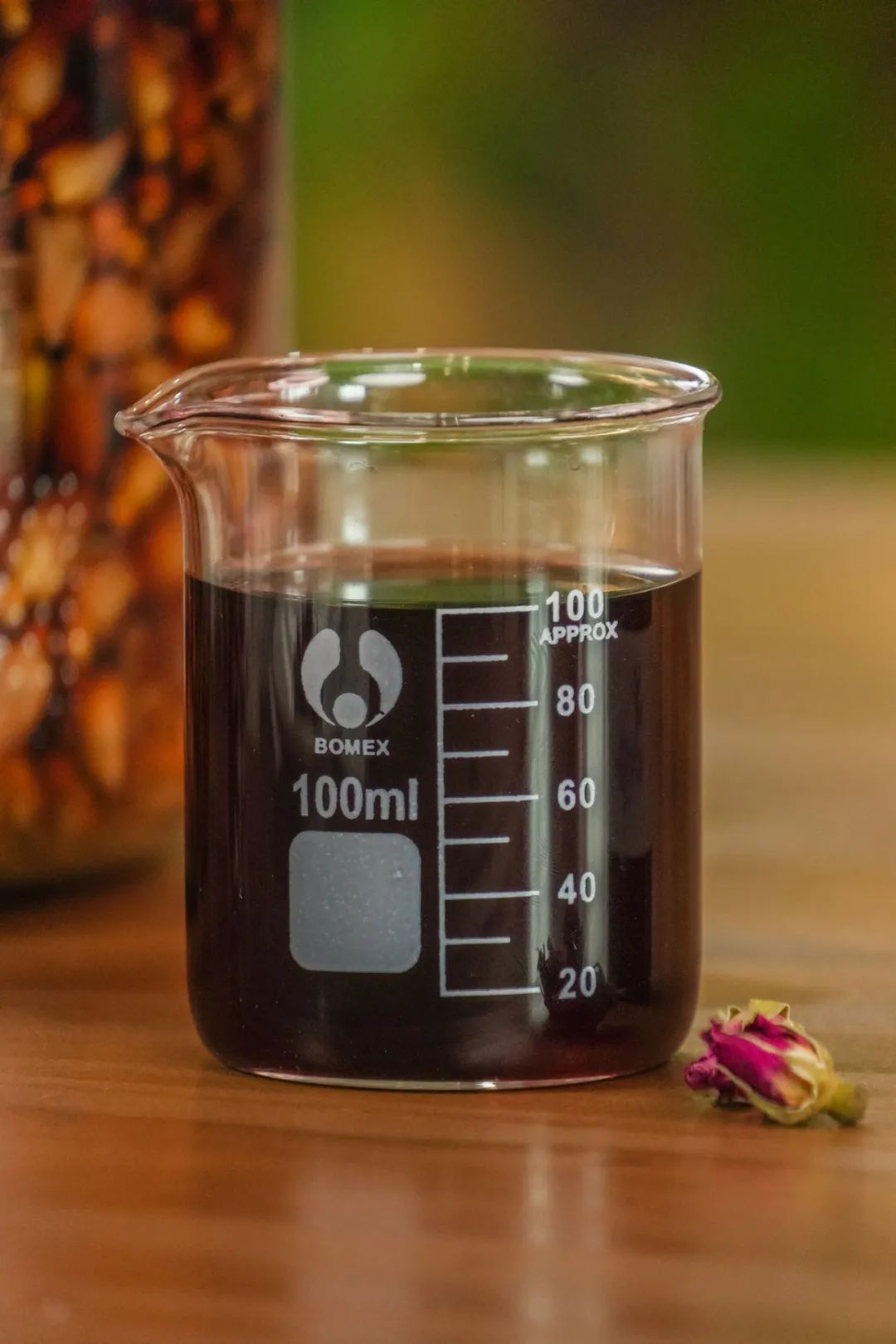 在过滤的时候,浓郁的、甜丝丝的香气一阵阵地窜进我的鼻子里。《纲目拾遗》里曾记载:玫瑰,性温、味甘微苦,具有理气解郁、活血散瘀之功效。