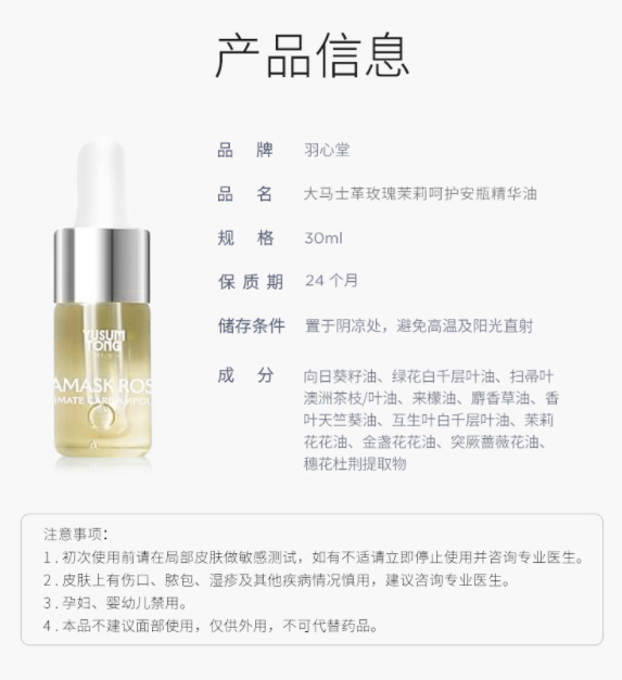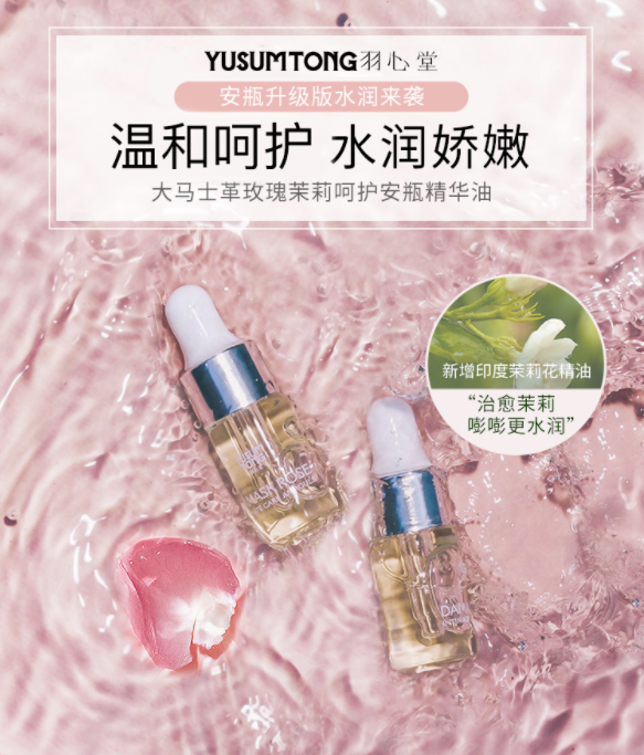 姐妹提到的这款玫瑰安瓶,就是羽心堂推出的【大马士革玫瑰茉莉安瓶精华油】。