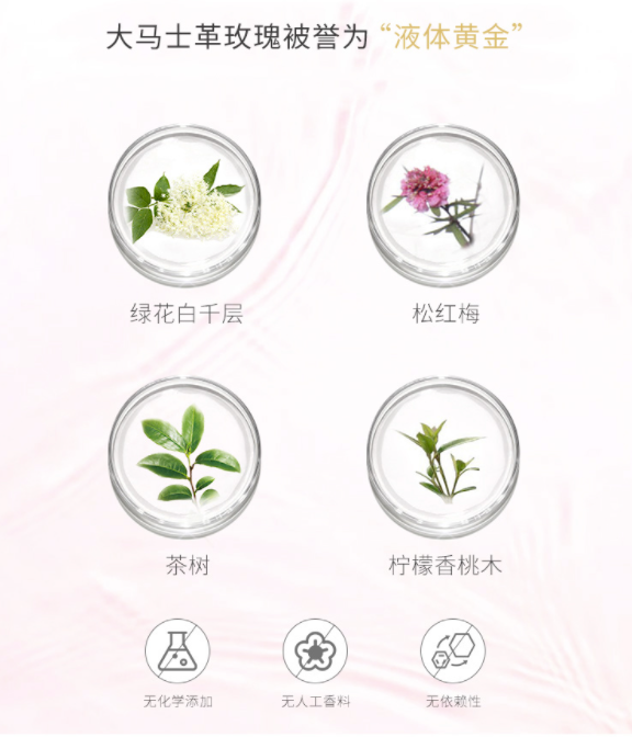 因为玫瑰安瓶的配方非常干净,只有精油+植物油调配,气味来自于天然精油的芳香,而非香精。