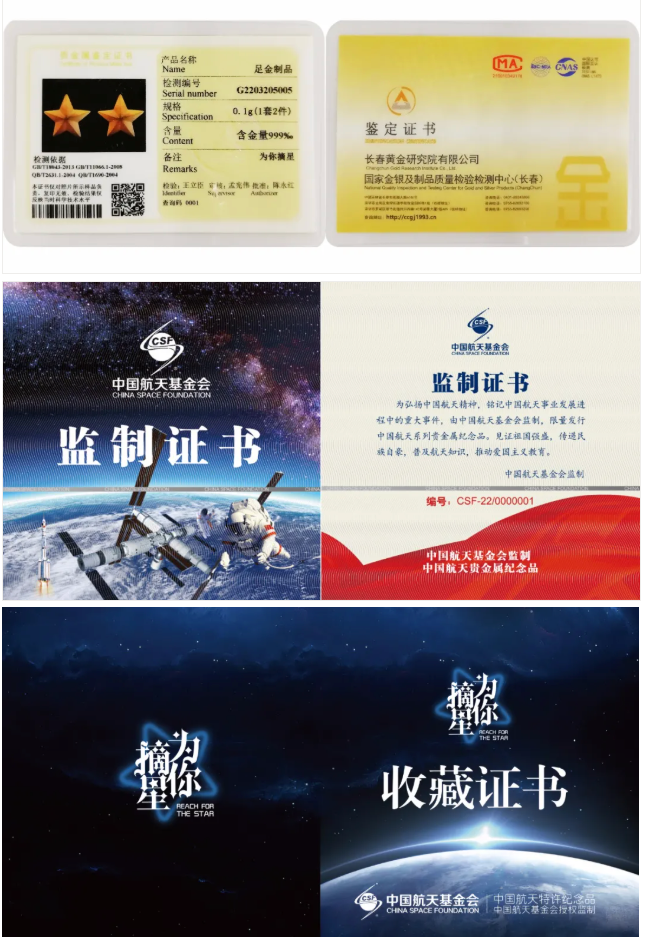 每一套都配有专属收藏证书和鉴定证书!其品质与意义得到了官方权威的认证。