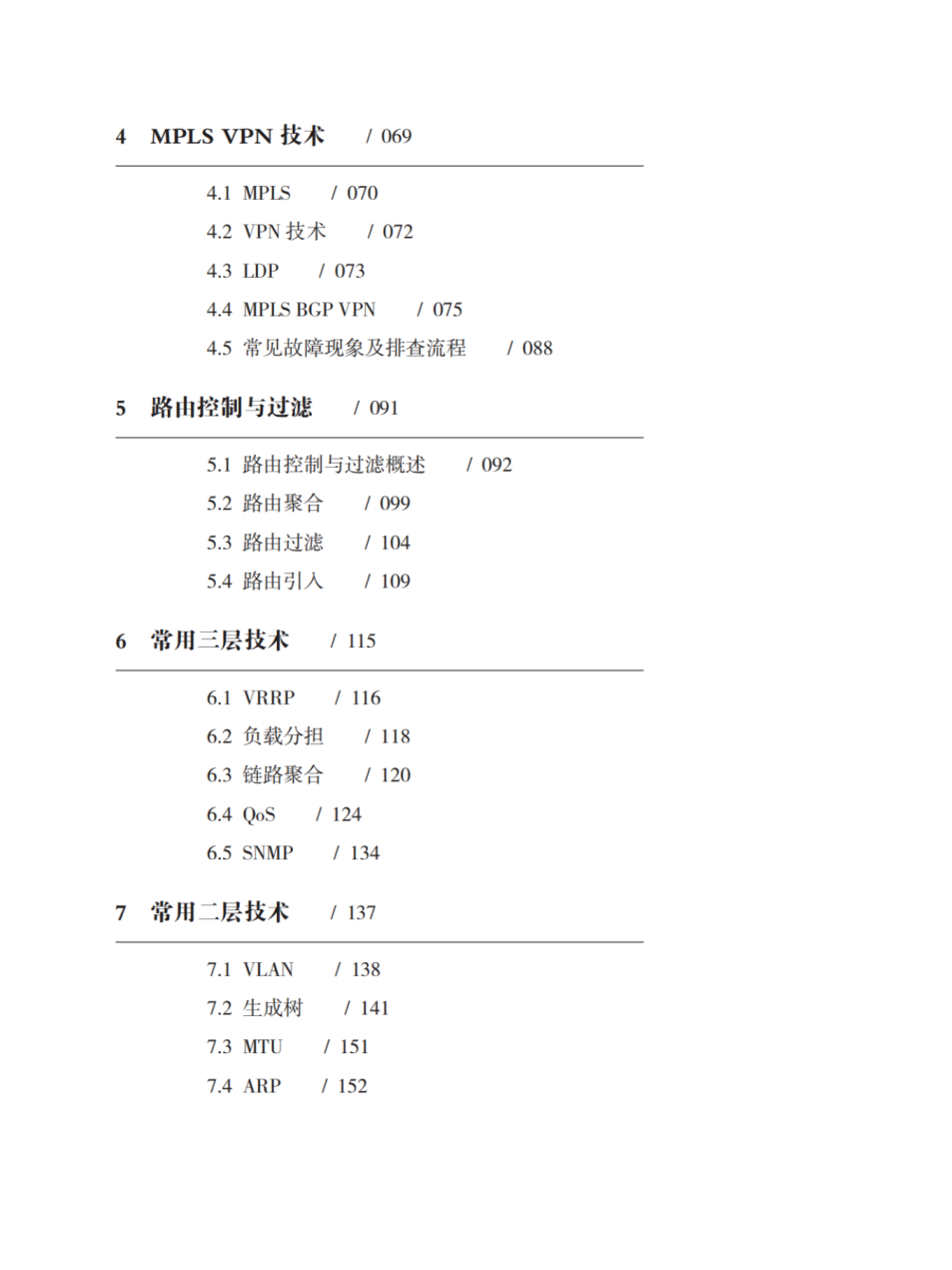 第2~8章对 OSPF、BGP、MPLS 等日常运维及竞赛场景中常用的协议进行了探讨,详细介绍了各个协议的主要知识点以及各类常见故障的排查流程。