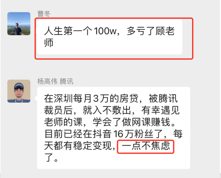 有人听了老顾的课,赚到了人生第一个100w,给老顾发了10万块红包,老顾劝他别发,自己不收任何红包。