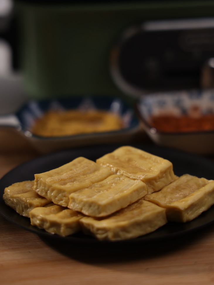 包浆豆腐是小方块状的,口感丰富,外焦里嫩,一口咬下去还会爆浆,里面像是藏了豆腐脑!豆香十足,不管是煎、烤还是炸都非常好吃!豆腐中含有丰富的蛋白质,是牛肉的两倍!