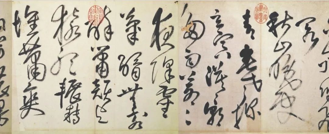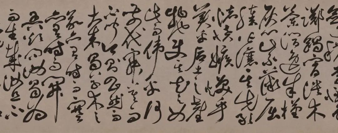 狂草点画形态必须以圆为主、方圆兼用,圆笔过多显油滑,方笔过多必滞涩,显不出狂草的流畅。要做到方圆兼而有之,以增加点画形态变化,丰富狂草层次。古大家中如王铎狂草用笔的方笔使用多一些,怀素的狂草用笔则以圆为主,黄庭坚的狂草则是方圆并用,在学习临摹中要仔细体会。狂草素有“一笔书”之称,故字内或行内的萦带牵连是狂草的主要特征,但萦带用笔也应以适当为好,不得过多使用,以能做到虚实相向变化为好。