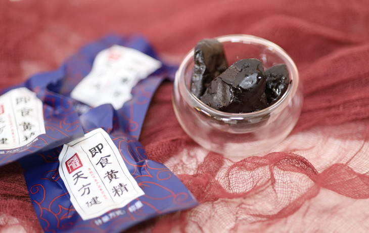 多道工序、精心炮制,最后得到的「即食黄精」颜色乌黑发亮,气味浓香;一口下去,肉质厚实,味甜中带点微苦,细腻无沙、无纤维感。
