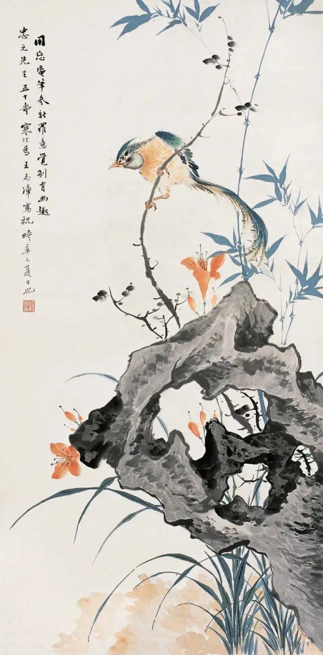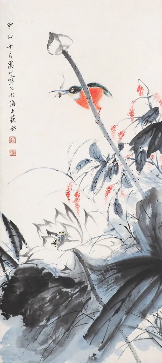花卉点缀蜂,需要画得精。不仅形对比,静中还有动。双翅墨要淡,用笔也较轻。六足有长短,不可都平行。头胸可断开,为了求生动。虽然形体小,画意也要浓。向背有呼应,活力在画中。
