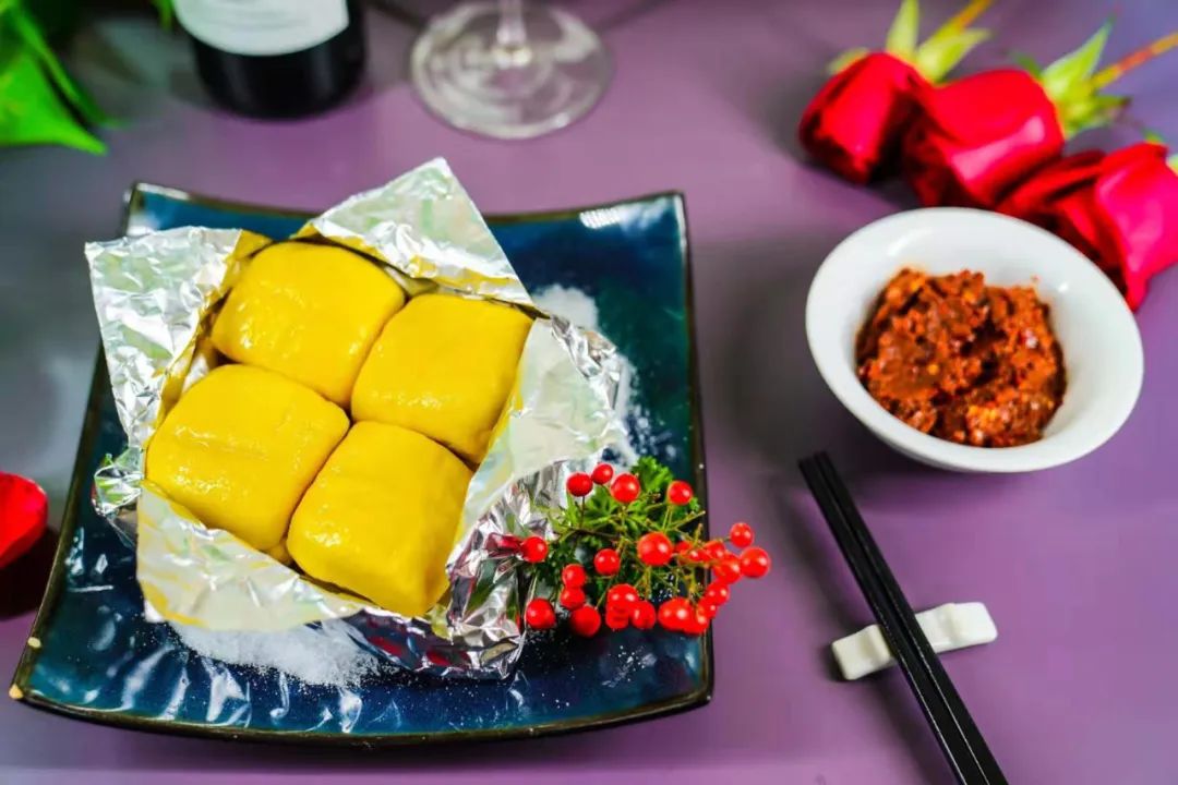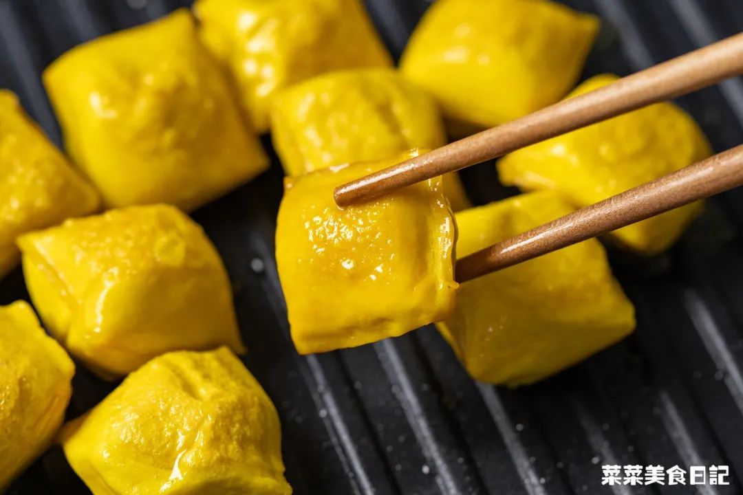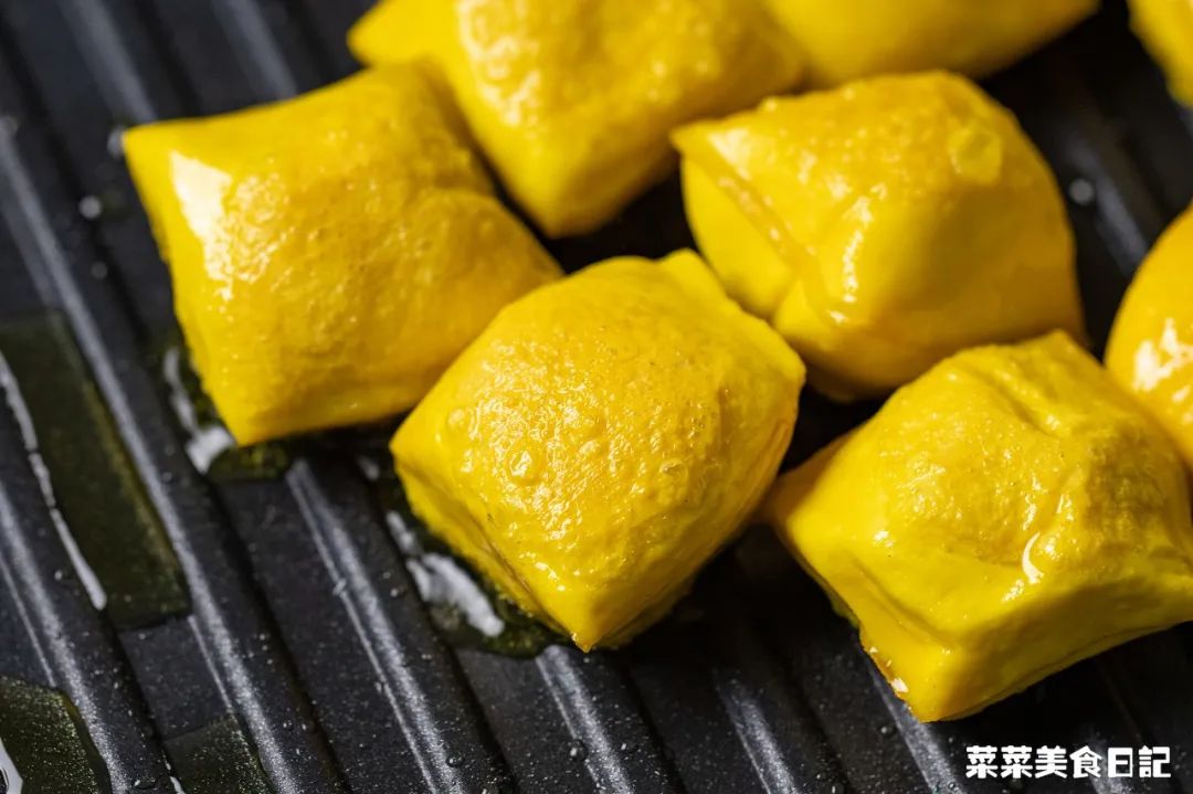 咬一口之后,内里竟细腻软滑,没有一点渣,一弹一软,还有淡淡姜黄清香,非常美妙。