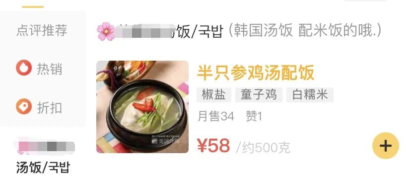 另外一个规格是,参鸡汤*2+大酱汤+泡菜汤,拼团价99元。