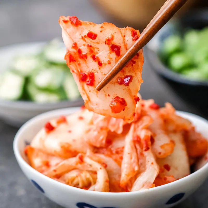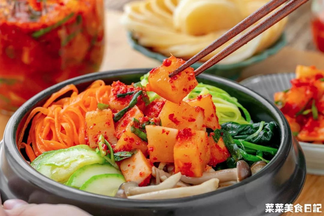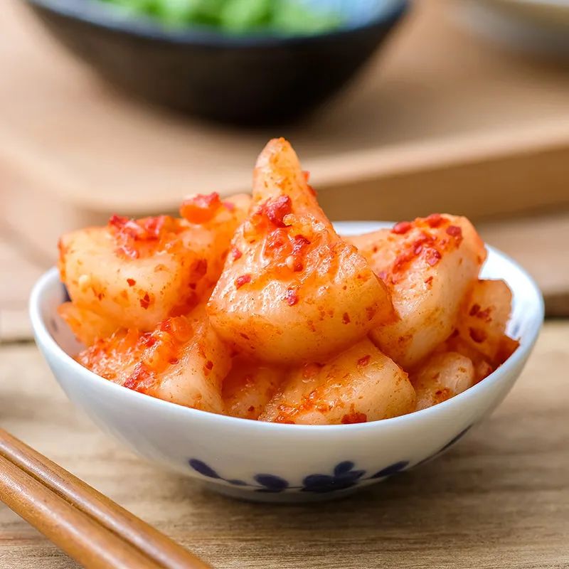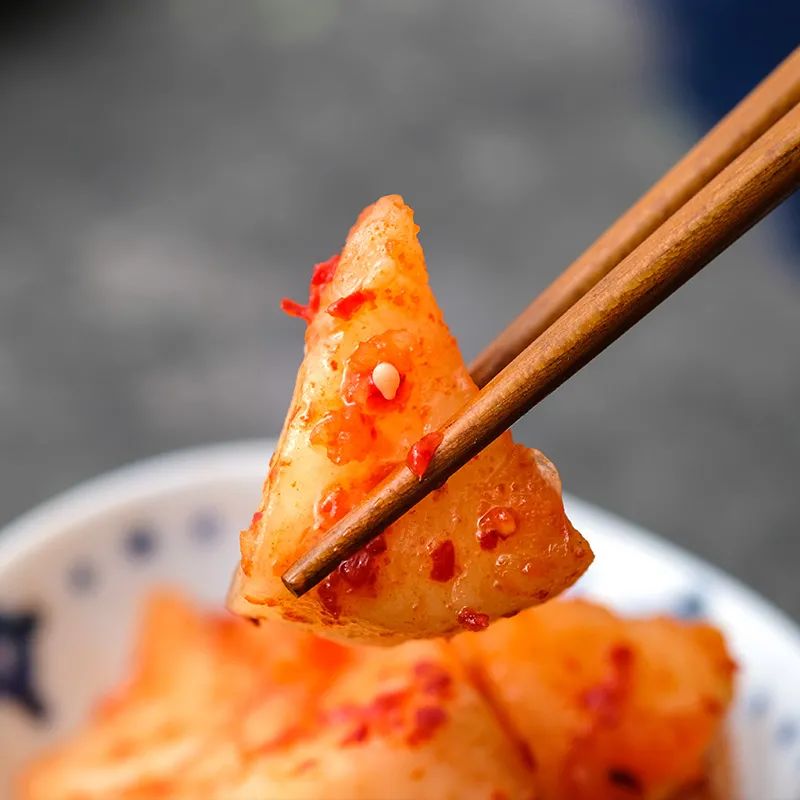 这款萝卜泡菜不呛口,非常清脆,可以当小零食和下饭菜。