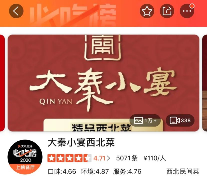 大秦小宴其实是一家陕西饭馆,大众点评必吃榜招牌,深圳西北菜热门榜第1名。
