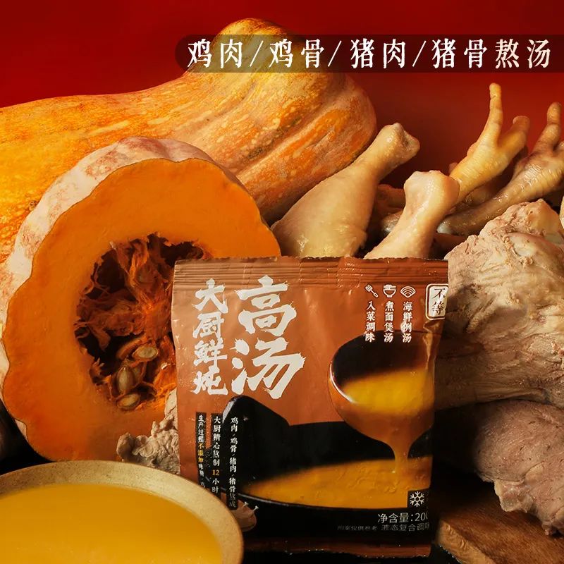 它可不是市面上的化学合成味精高汤哦,鲜味来源全靠肉类和果蔬本身。