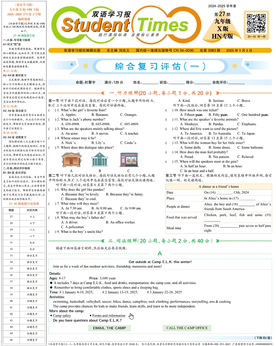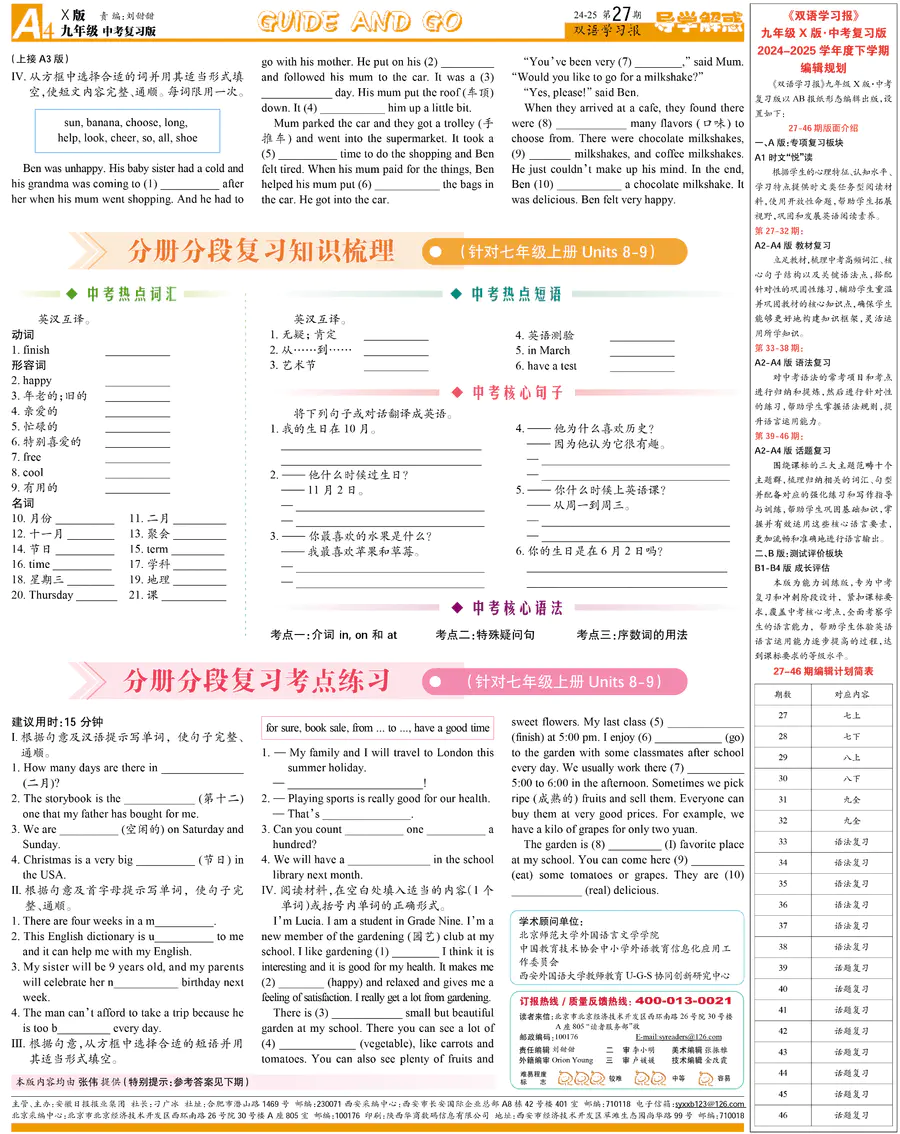 《双语学习报》九年级 X版HN专版 第27期