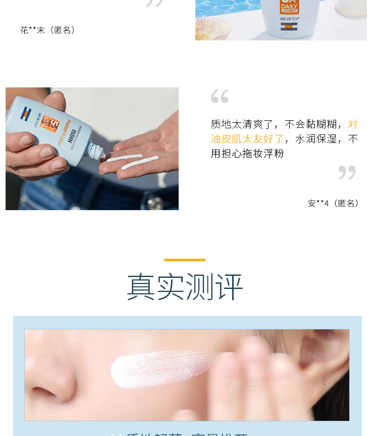 整体来说,怡思丁这一款防晒不论是从它的质地,还是它的使用感,都是非常优秀的。对于我这样一个油皮,夏天用它既不会影响防晒的效果,也不会各位肌肤造成负担。水感清透,光滑服帖的使用感真的非常棒,皮肤全天清爽,拥有天鹅绒般丝滑触感。