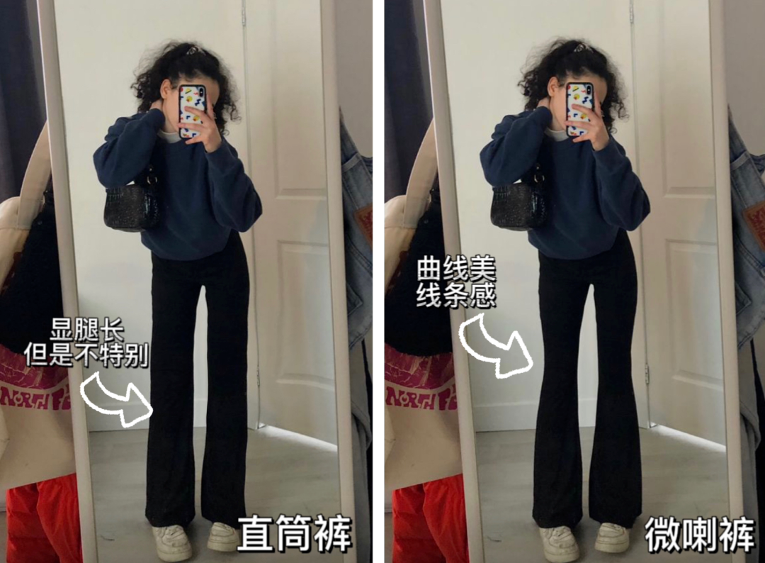 1.高腰拖地微喇版型,专为腿型不好设计,修饰腿型,显高显瘦;