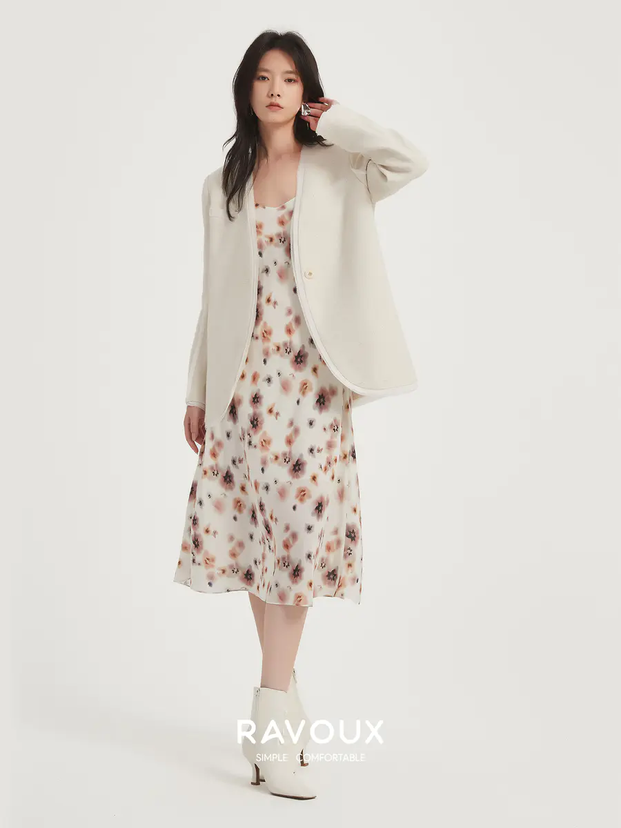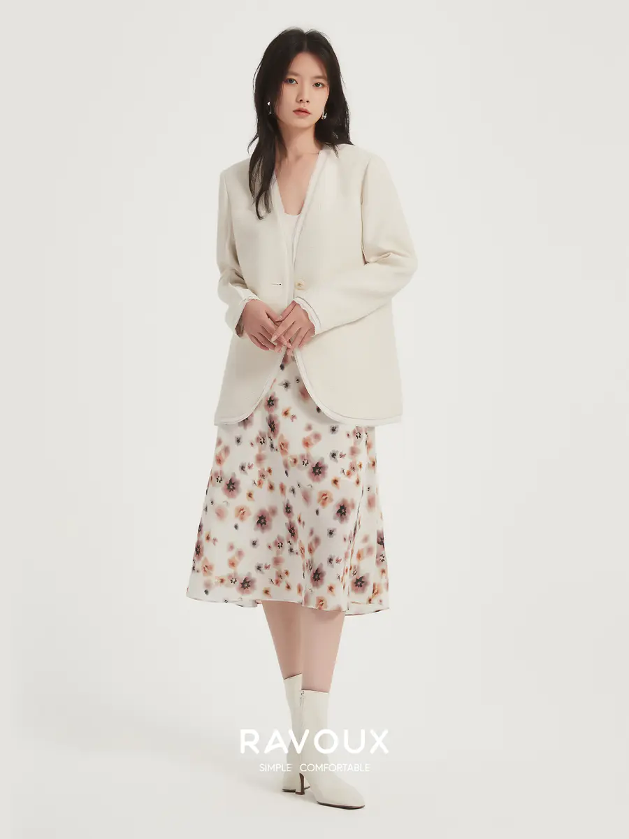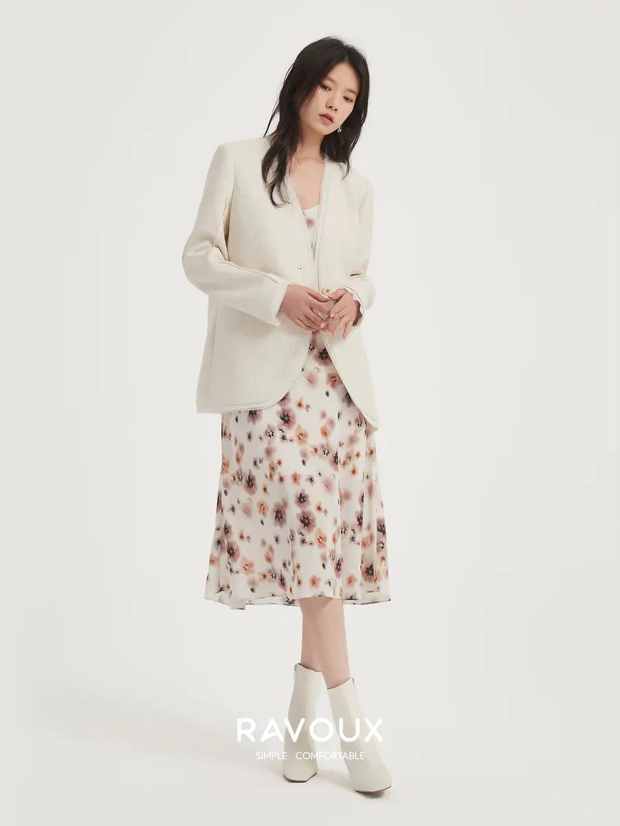 早春极简主义|V领一粒扣拼接网纱亚麻西装