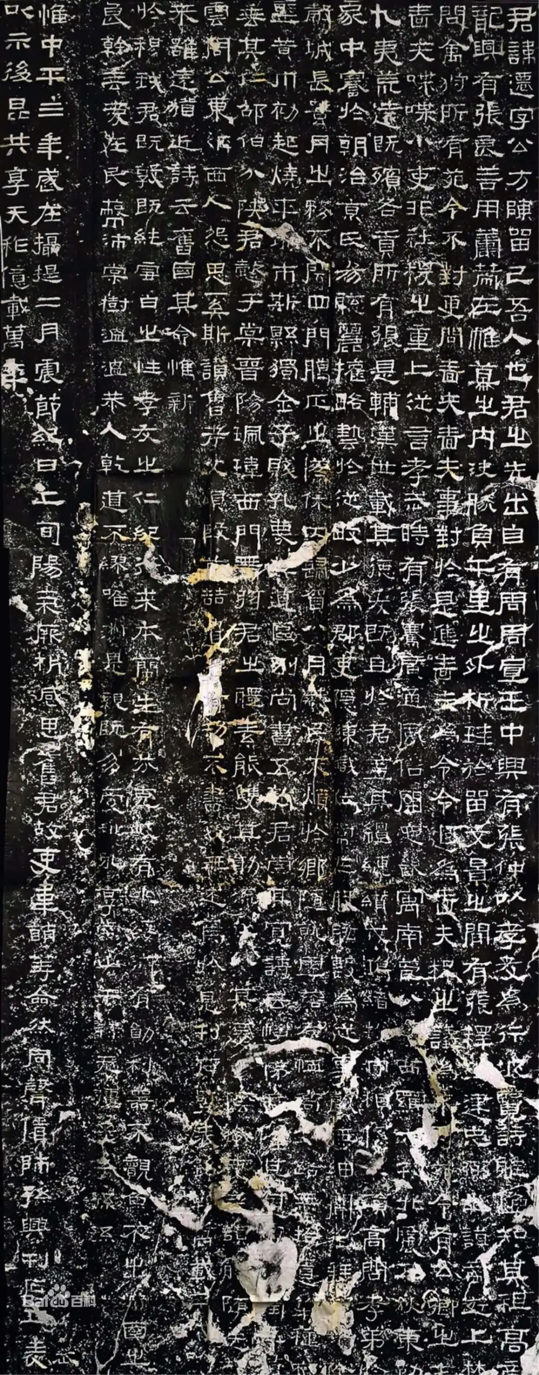 《张迁碑》篆额题“汉故毂城长荡阴令张君表颂”12字,额字独呈扁形,书意在篆隶之间;碑阳正文15行,行42字,共567字;碑阴3列,上2列19行,下列3行碑文。此碑是谷城故吏韦萌等为追念张迁之功德而立,铭文着重宣扬张迁及其祖先张仲、张良、张释之和张骞的功绩,并涉及到黄巾起义军的有关情节,具有很高的史料价值。