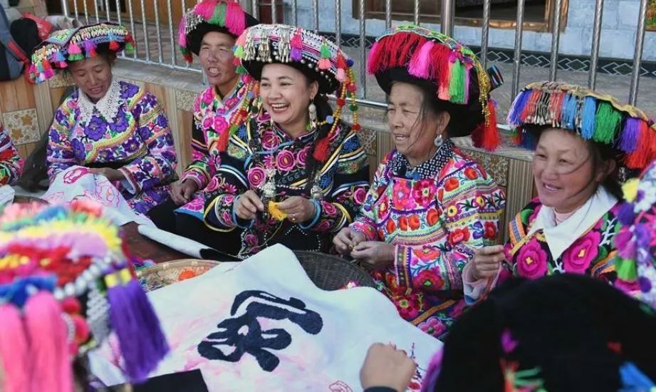 从那时起,她拿起针线向奶奶和母亲学习,与彝绣结下了一生的缘分。