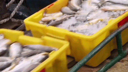 捕获的海鲜,直接在运输船上分拣。筛选相当严格:只留个大饱满、形态完整、鱼目清晰明亮。