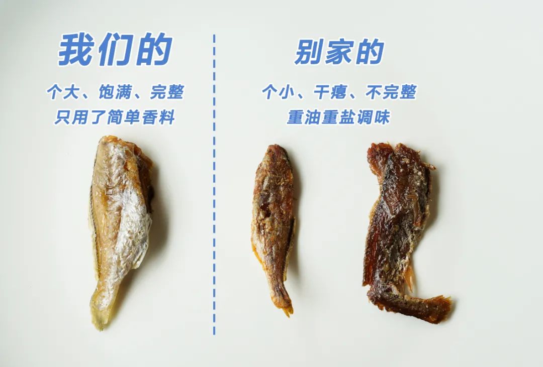 我们:个大、饱满又完整,只用简单香料,保留了小黄鱼本身的色泽