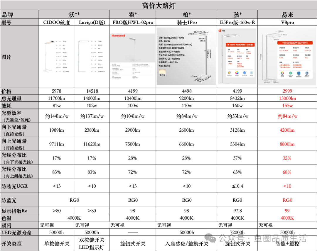 综上,选择大路灯要重点看的硬核参数都介绍了,以前对大路灯有过研究的,都能看出来我们这次推荐的易来两款指数都非常抗打!高品质无疑了~