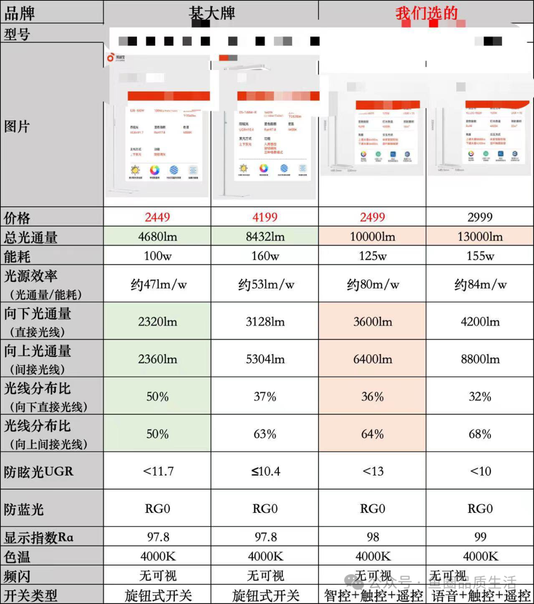 所以不仅要看数值,还要看各种参数的配合,比如光通量、上下光及配比、眩光等等,当然价格也是非常重要的一个部分。