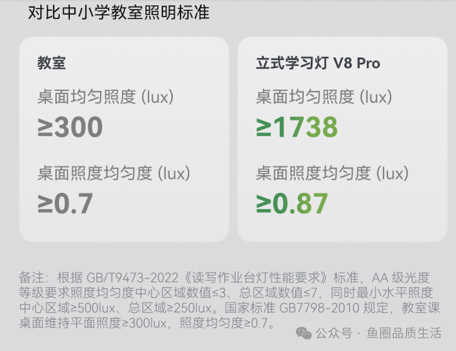 这些主要是频闪、蓝光、眩光、显色、色温等健康护眼方面的参数,必须符合国标,甚至更优才行。