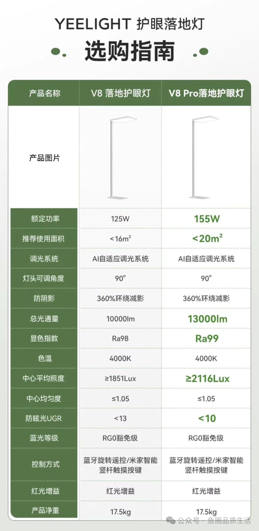 我们这次还有易来V8的升级款,V8PRO在光通量上更加升级,做到了13000lm,155W的功率,中心照度和均匀度更高更好,所以如果是孩子房间比较大,或者是用在客厅的,可以考虑入这个升级款。