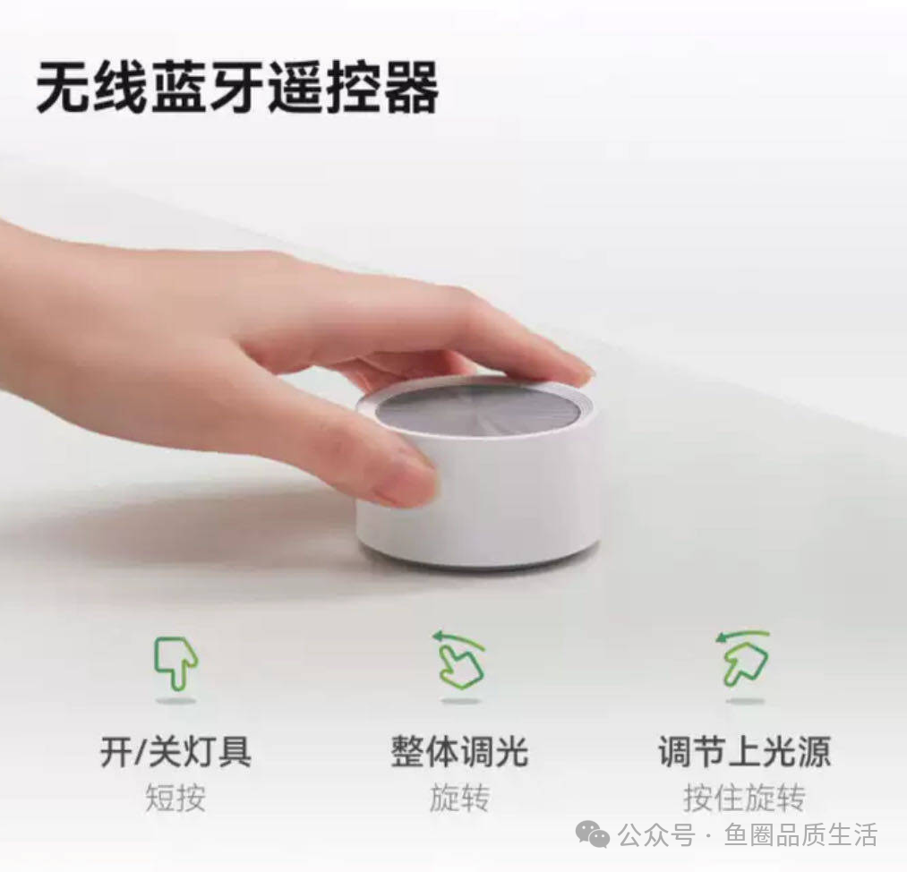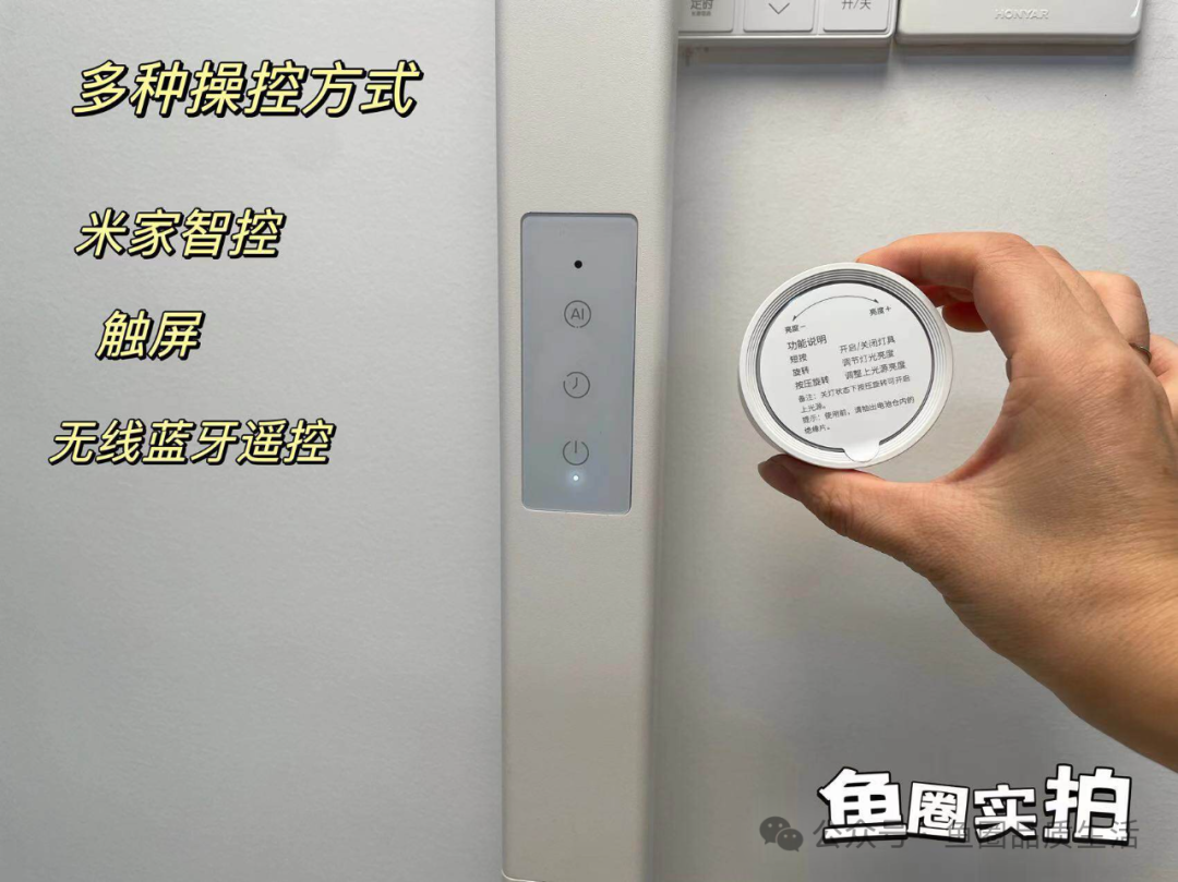 这个V8系列也有多种的交互方式,有米家智能控制(手机、语音等),还有灯身上的触屏按键,还有一个无线蓝牙遥控器。