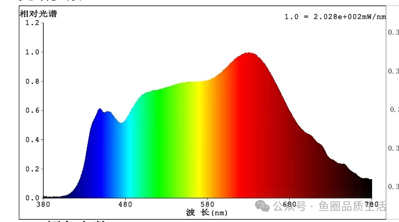 大家都知道太阳光好,是因为光线亮、均匀、连续等,易来采用了符合教室照明标准的全光谱LED光源,定制4芯减蓝光全光谱芯片,下发光和整体发光光谱图给大家看看,都是减蓝增红的配置: