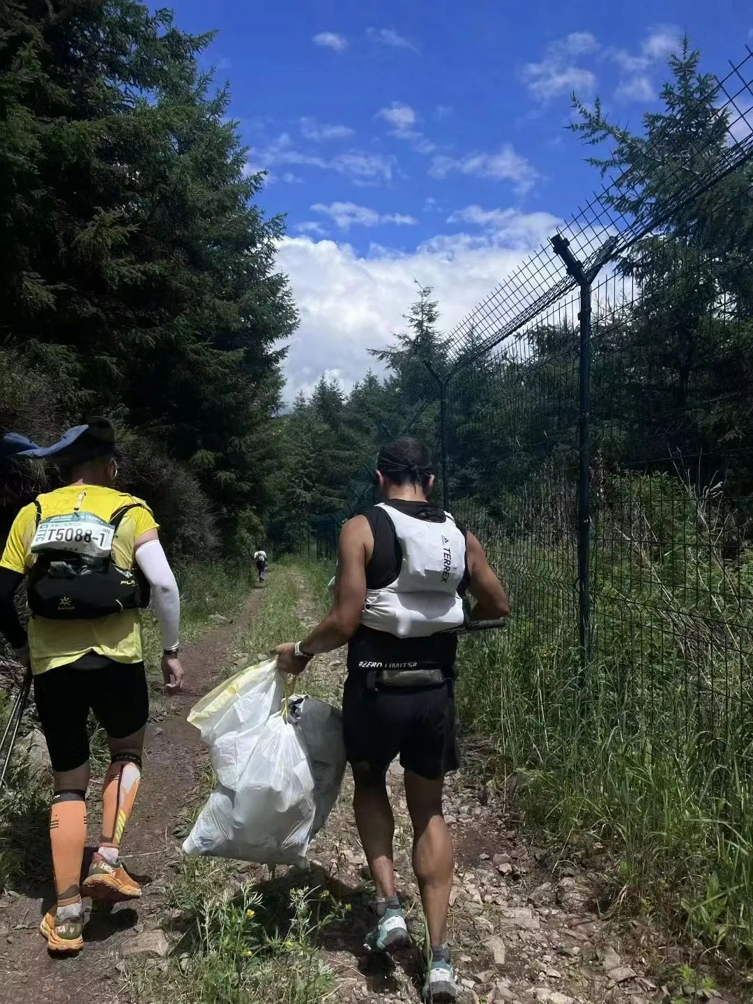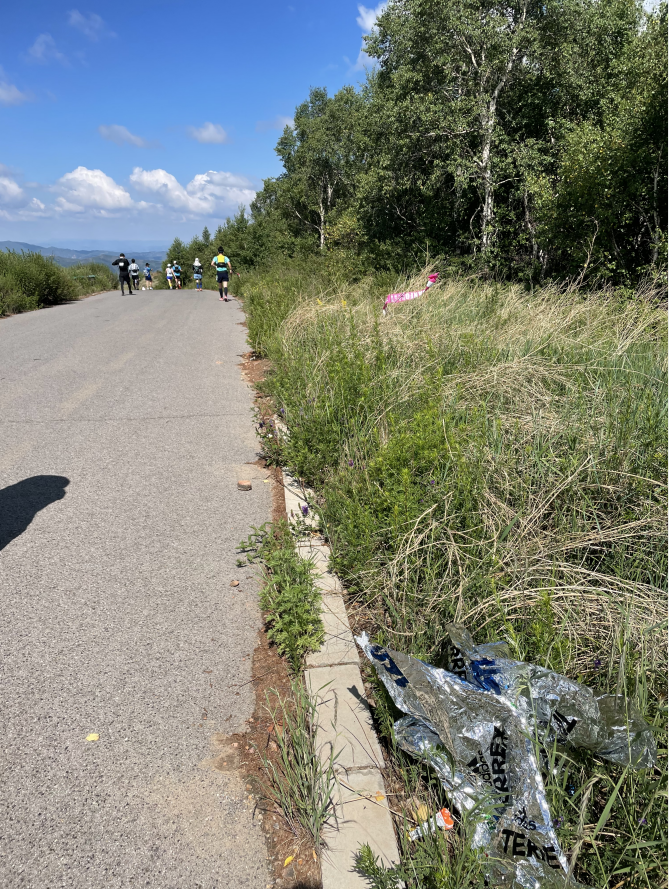 空水瓶、能量胶皮、盐丸包装、保温毯以及其他垃圾,赛后上山收路标、垃圾的队伍都不需要看轨迹,只要沿着垃圾便能走完整条赛道。林潇和他的同事忙不完,又叫上了十几个志愿者。皮卡车装满了拉下去,倾倒完上山再拉。就这样,忙了三天捡了三天。