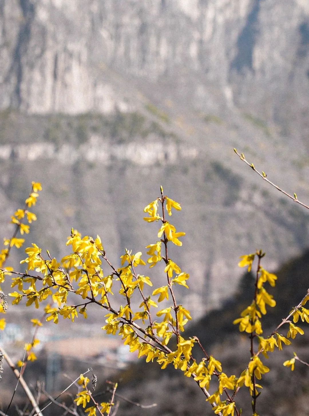 春来花开,连翘于一片枯灰山崖中金黄闪耀,野桃花肆意盎然,杏花、梨花绽放于万重山巅,如雪飘零,映衬着村落炊烟,古意盎然。群山峡谷内漫山遍野黄色、红色、白色一片片,蔚为壮观。